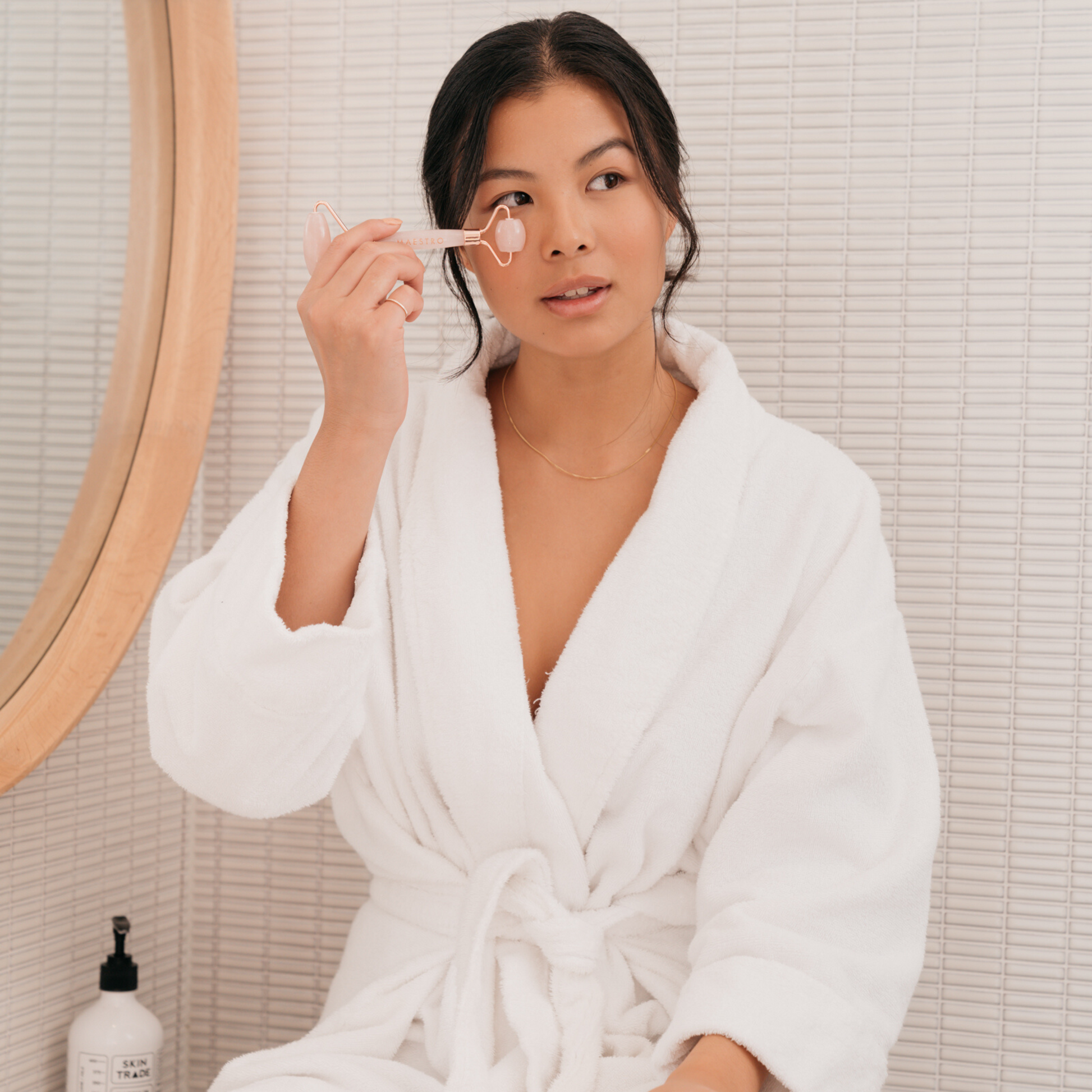 Use with your favourite serum or moisturiser and roll in gentle upward strokes on your neck and face. The smaller roller can be used on the delicate eye area. Can be placed in the refrigerator and applied cold to reduce puffiness and inflammation. Or drop in a warm (not hot) cup of water for a few seconds and apply warm to face for better penetration. Gives the complexion an overall brighter, healthier appearance with a youthful glow. Can also be used in conjunction with your favourite face mask for better results.
